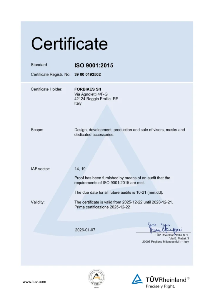 A fundamental step towards operational excellence: Forbikes S.R.L. is now ISO 9001 certified.